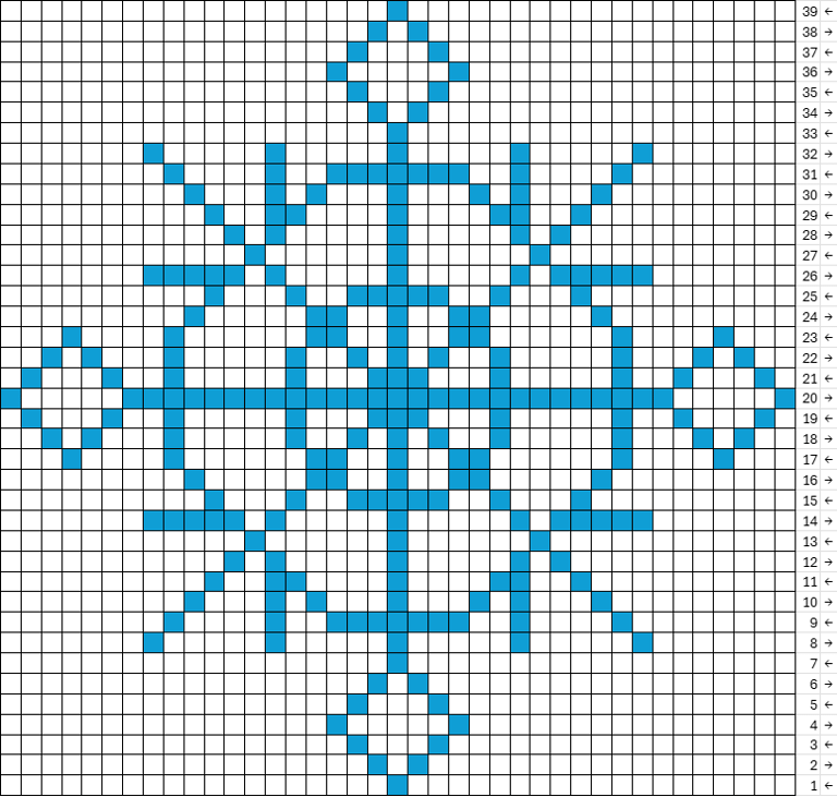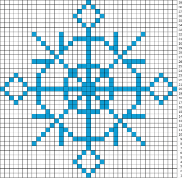 This plush snowflake is a 37x39 pattern for a fun addition to any christmas or festive tapestry. With only 2 colors it can also be used as a filet crochet pattern.